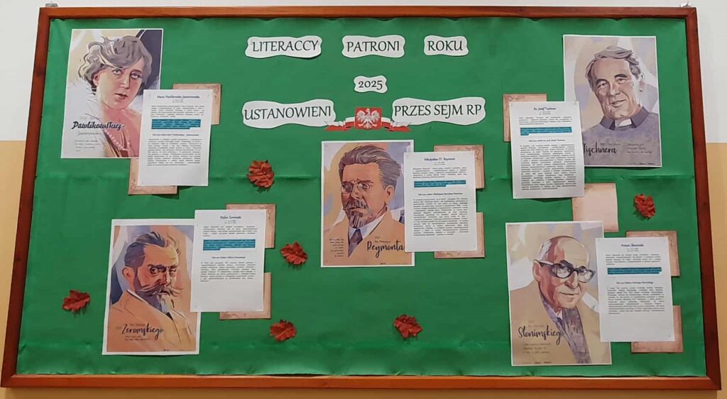 Zwieńczeniem szkolnych obchodów było przygotowanie przez uczniów aktywu bibliotecznego wystawy na korytarzu szkolnym pt. „Literaccy patroni roku 2025 ustanowieni przez Sejm RP”, przybliżającej sylwetki i dorobek wybitnych polskich pisarzy i poetów.