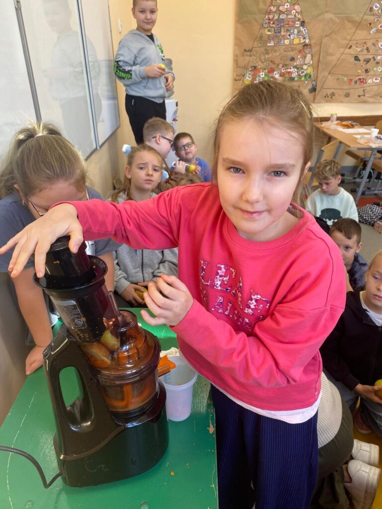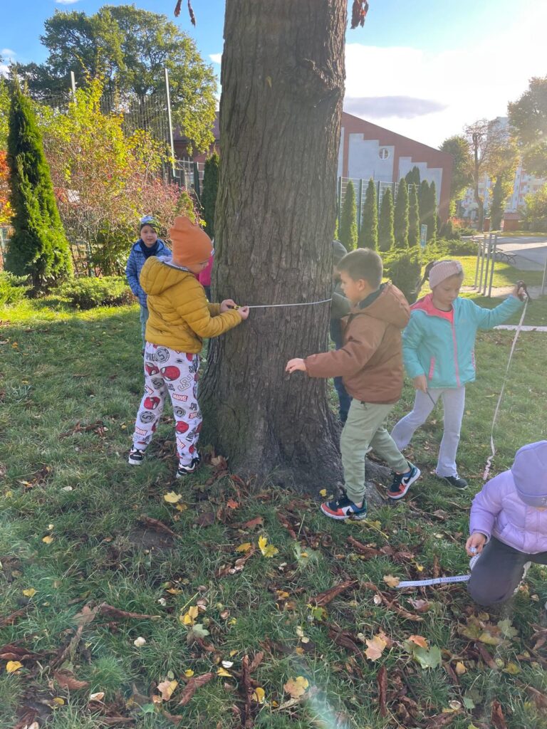 W poniedziałek dzieci razem z wychowawczyniami wybrały się w plener, gdzie za pomocą miarek krawieckich mierzyły obwody drzew oraz odległości między nimi. Inna grupa uczniów przygotowywała soki z marchwi i jabłek, obliczając, ile owoców i warzyw potrzeba, aby uzyskać jedną szklankę soku (250 ml), dwie szklanki i więcej.