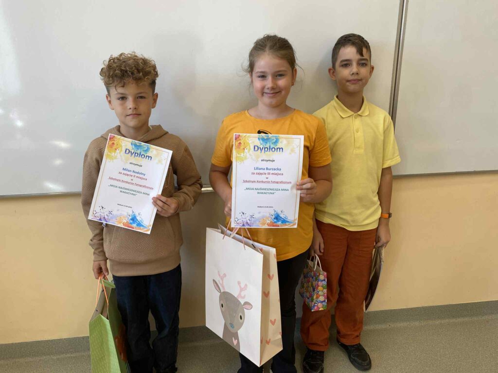 W naszej szkole po raz kolejny odbył się konkurs fotograficzny pod hasłem „Moja najśmieszniejsza mina wakacyjna”. Uczniowie klas I–III chętnie wzięli w nim udział, prezentując zdjęcia ze swoimi zabawnymi minami z wakacji. Następnie dzieci z klas I–III oddały głosy na najśmieszniejsze fotografie.